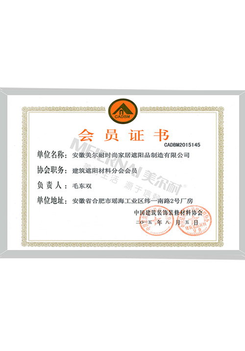 建筑遮陽材料分會會員證書
