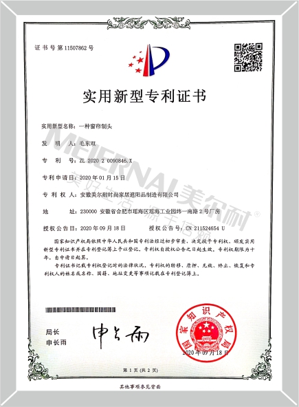 《一種窗簾制頭》實用新型專利證書