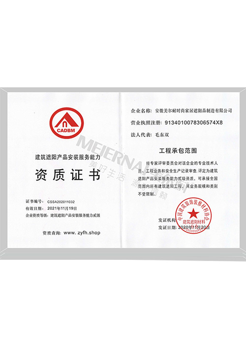 建筑遮陽產品安裝服務二級證書